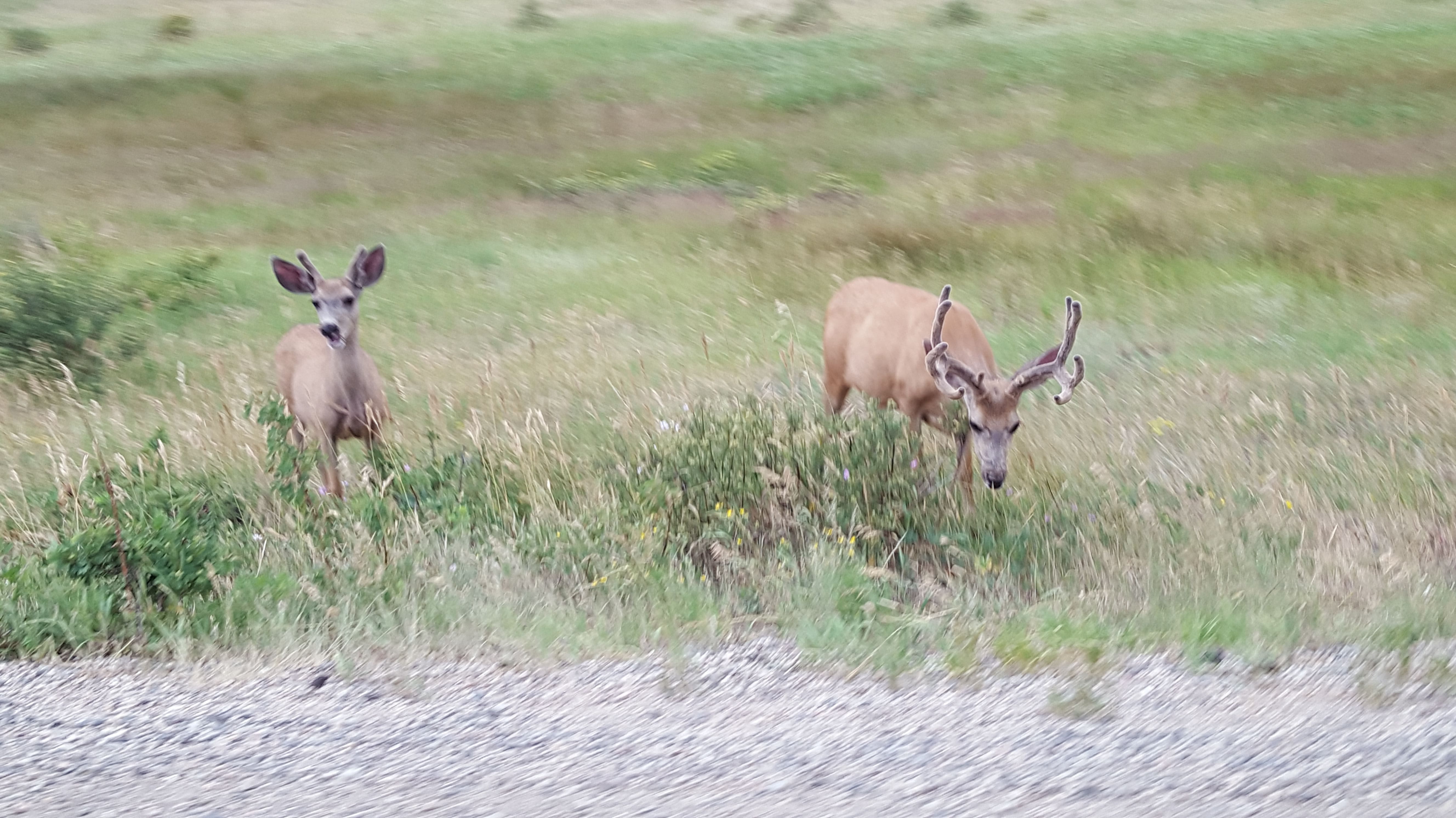 We got a nice surprise. As we rounded a curve, right up ahead was an elk!