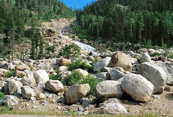 When all that water hit level ground, it slowed and fanned out, depositing trees, boulders, smaller rocks, sand, and silt, forming the fan. It’s a neat place to see, although the September 2013 flood changed it a lot. (I think it was better before 2013.)