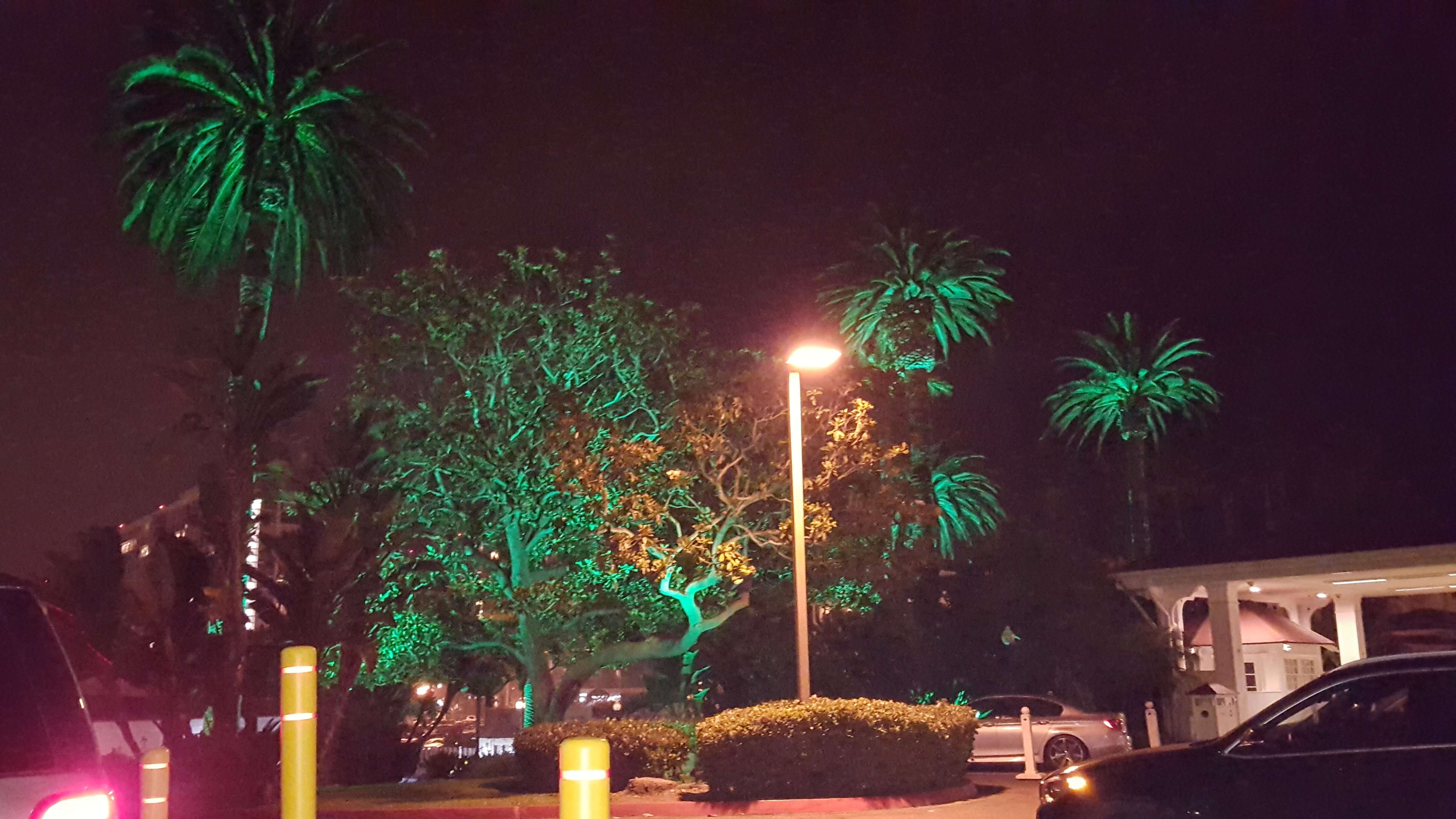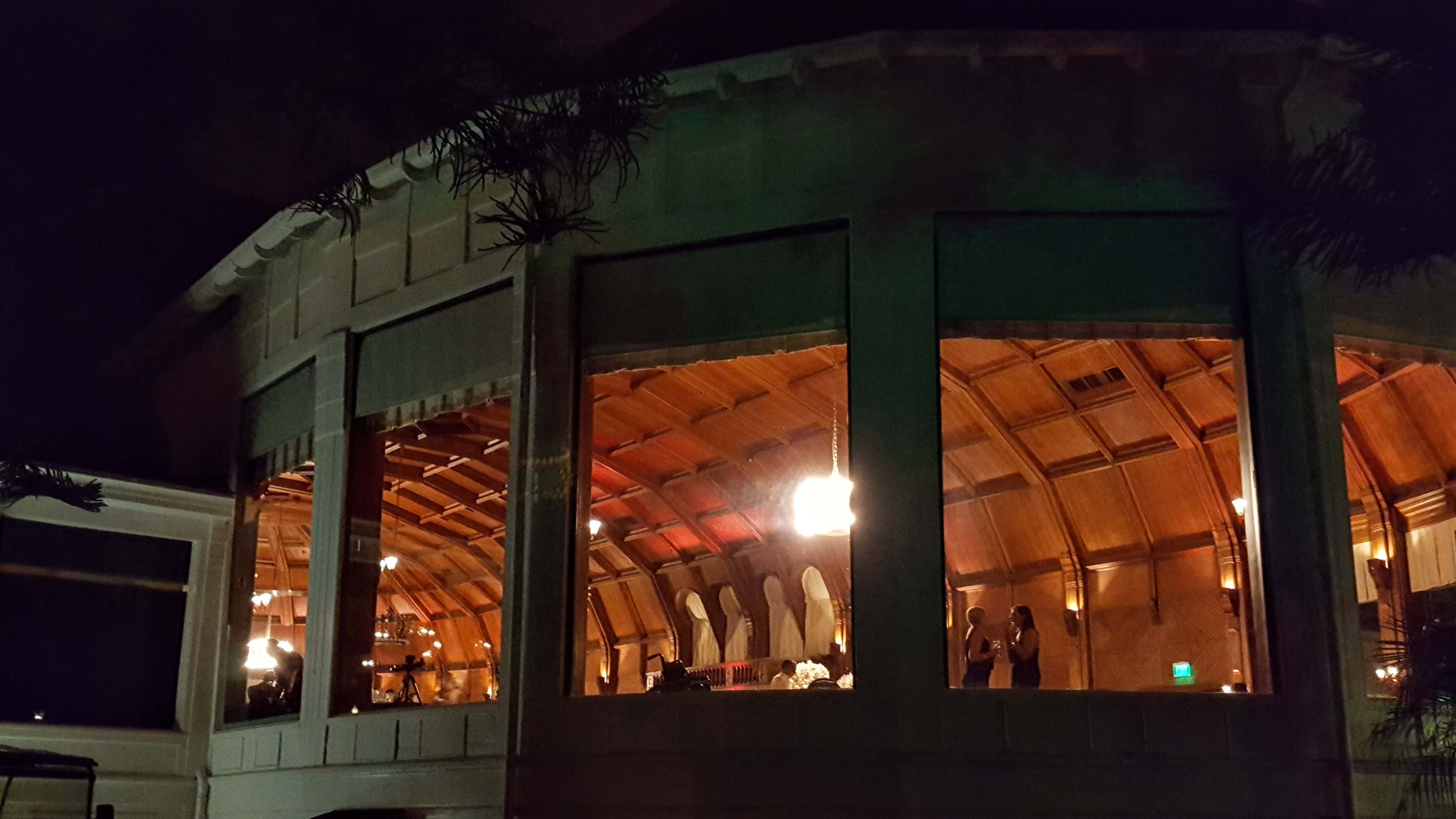 It’s dark, but the enchanting hotel’s trees and grounds are charmingly lit.