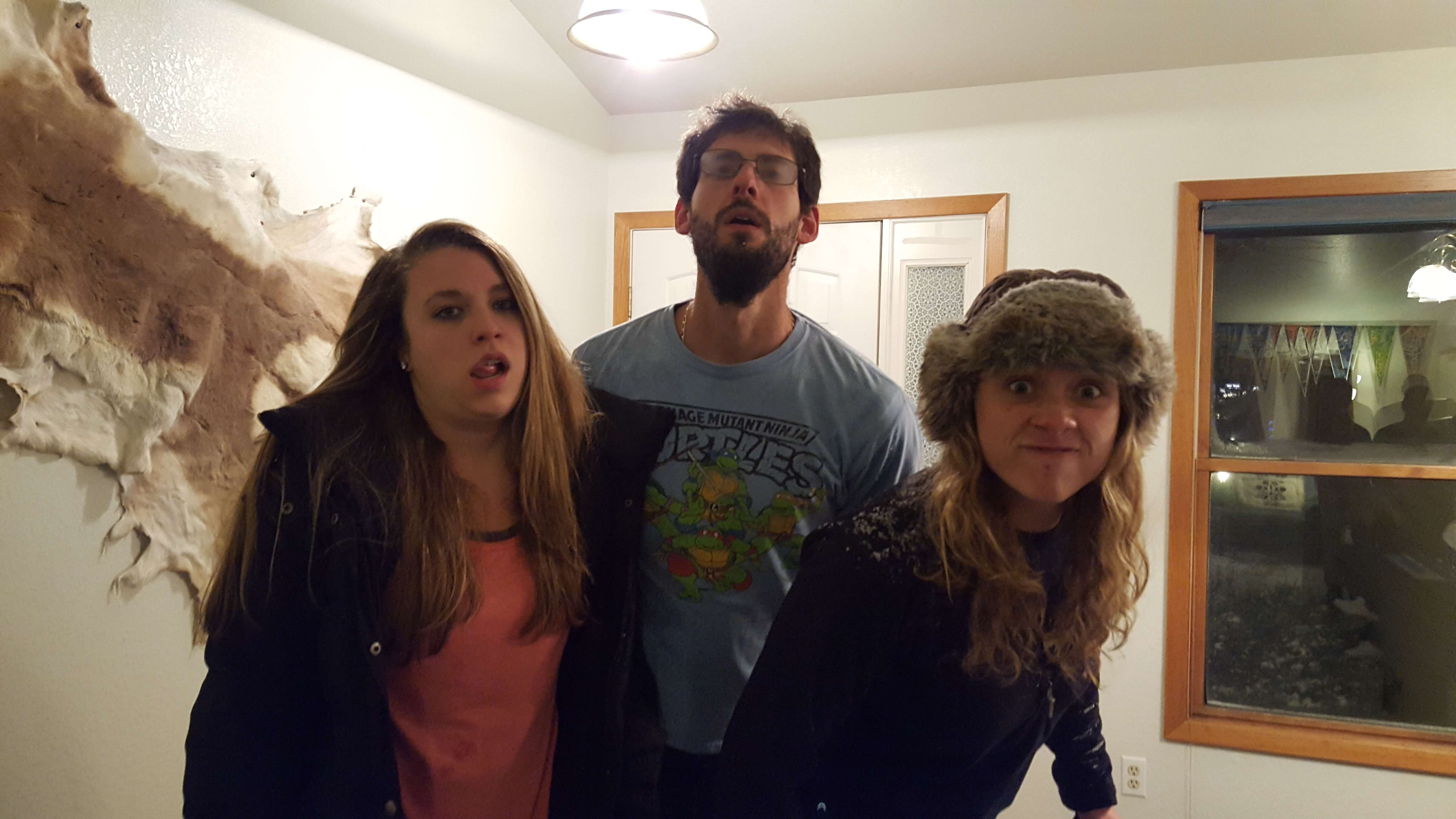 The kids went out to load Calie’s luggage and came back frozen and in shock! Snow and wind had assaulted them furiously! Be sure to click on the images below to see them larger; I think they’re funny! 😛