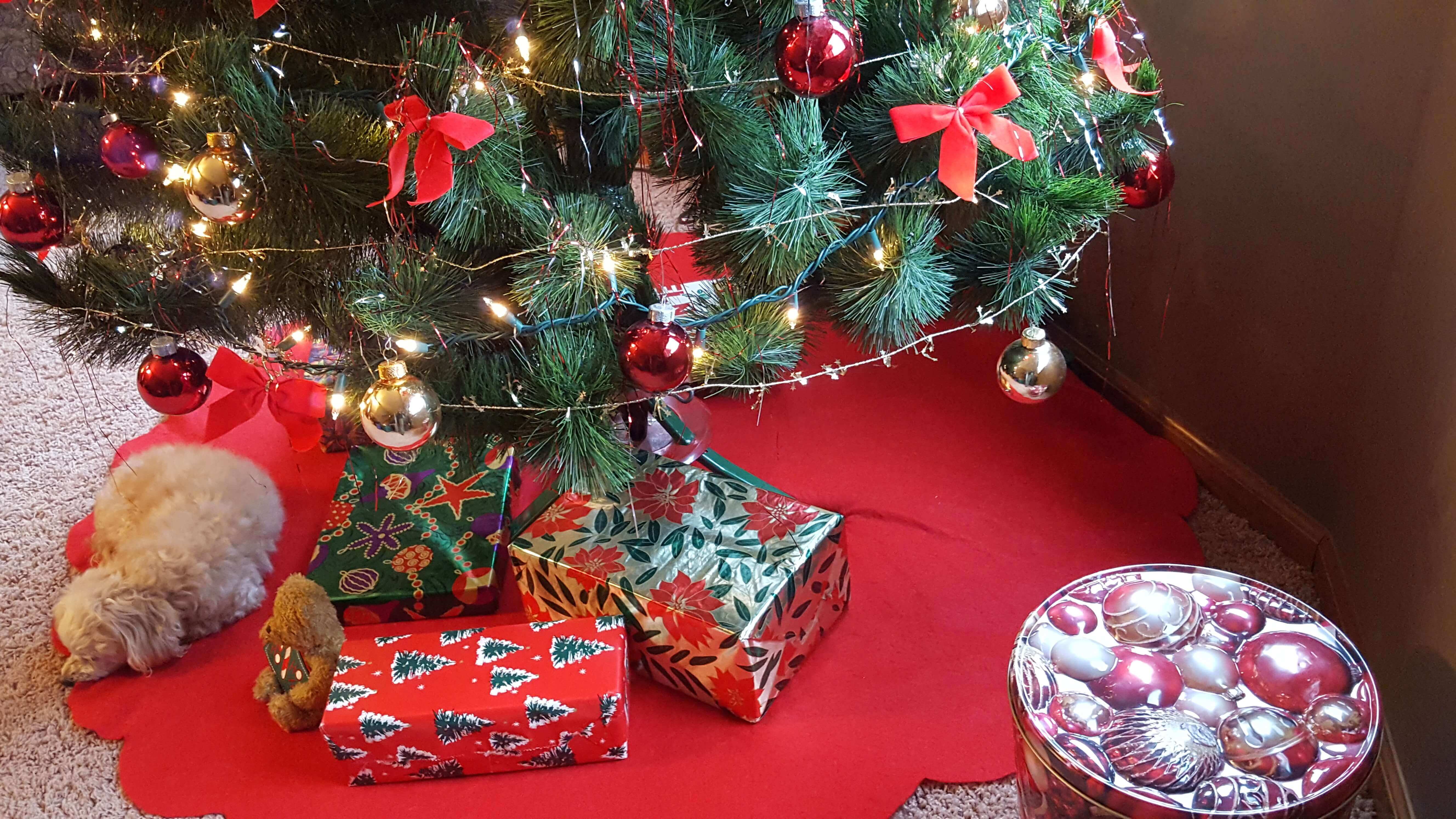 As of this writing, there’s not one present wrapped! 😮 The picture to the right tells a different story, but I have “props” that come out when the tree goes up!